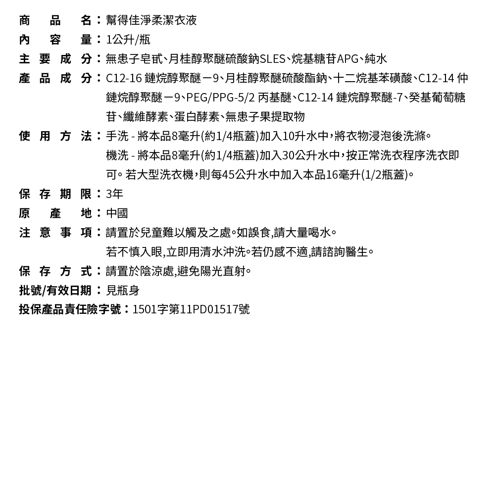 一瓶抵3瓶 深層潔淨 保護織物纖維 天然生物酶 無患子複合配方APG