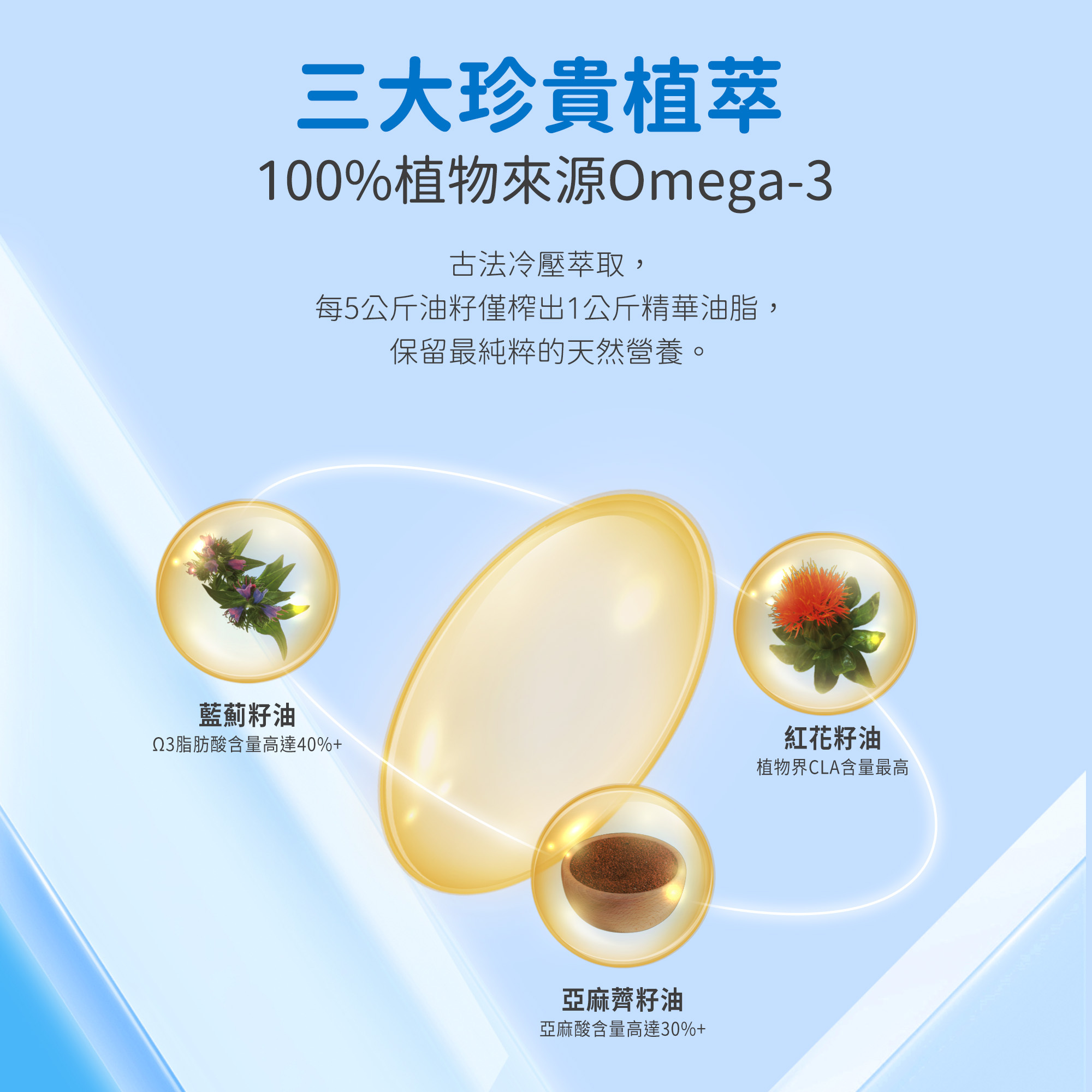 3大珍貴植物油 含豐富ALA和SDA 促進體內轉化 提高代謝 100%天然成分無添加